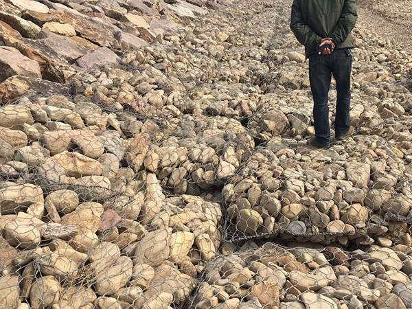 5.放置:綁好后,用機器小心將塞克格賓一個一個或兩個兩個的吊放到恰當位置。為了保證質量,石籠網(wǎng)縫邊、組裝時應用粗的邊絲和綁絲。